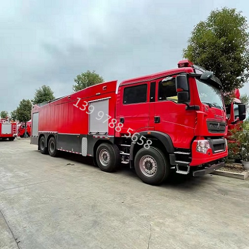 豪沃T5G8噸泡沫消防車圖片_高品質_哪里賣,是一種設計制造成適宜消防隊員乘用、裝備各類消防器材..
